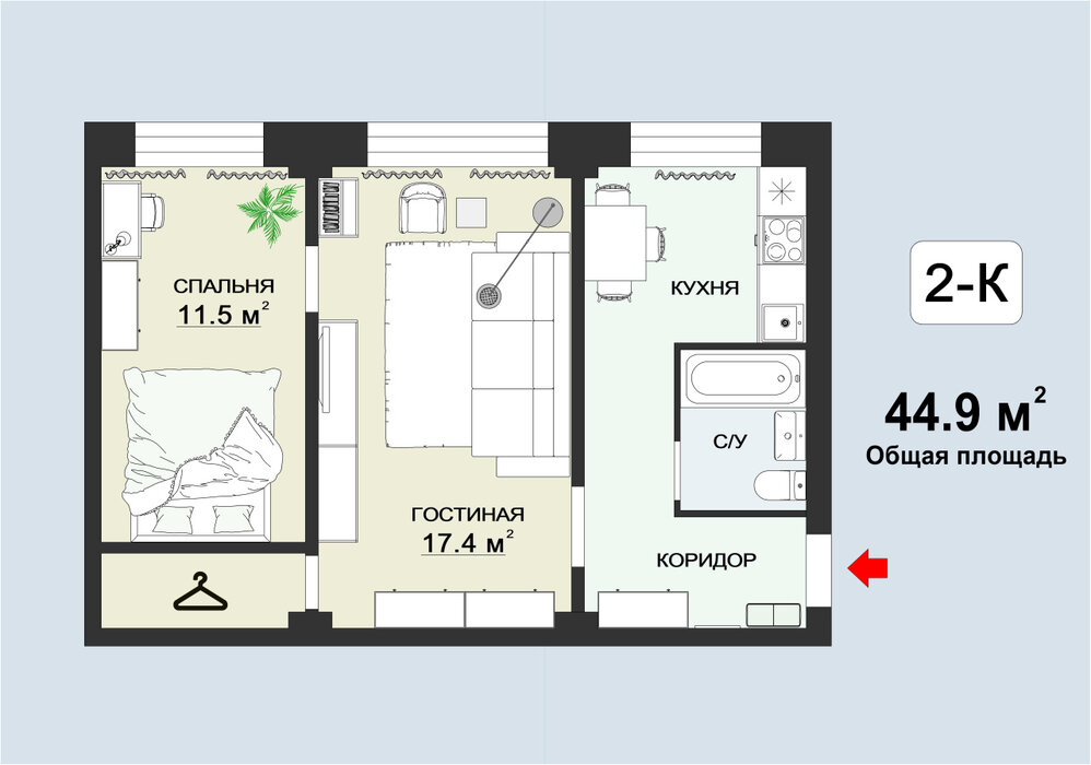 - 44.9 м2