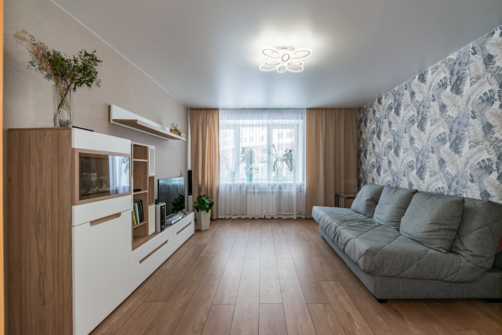 Жилые помещения занимают 34 квадратных метра, а кухня 6 квадратных метров, предоставляя достаточно места как для приготовления пищи, так и для семейных ужинов. Квартира расположена на третьем этаже девятиэтажного кирпичного дома, построенного в 1976 году. Здесь царит приятная атмосфера спокойствия и уюта, благодаря тому, что окна выходят во двор, где также находятся детская и спортивная площадки – идеальное место для отдыха и игр детей. Жильё оборудовано раздельным санузлом и имеет удобное планирование пространства, включая одну изолированную комнату, которая может стать детской, спальней или рабочим кабинетом.