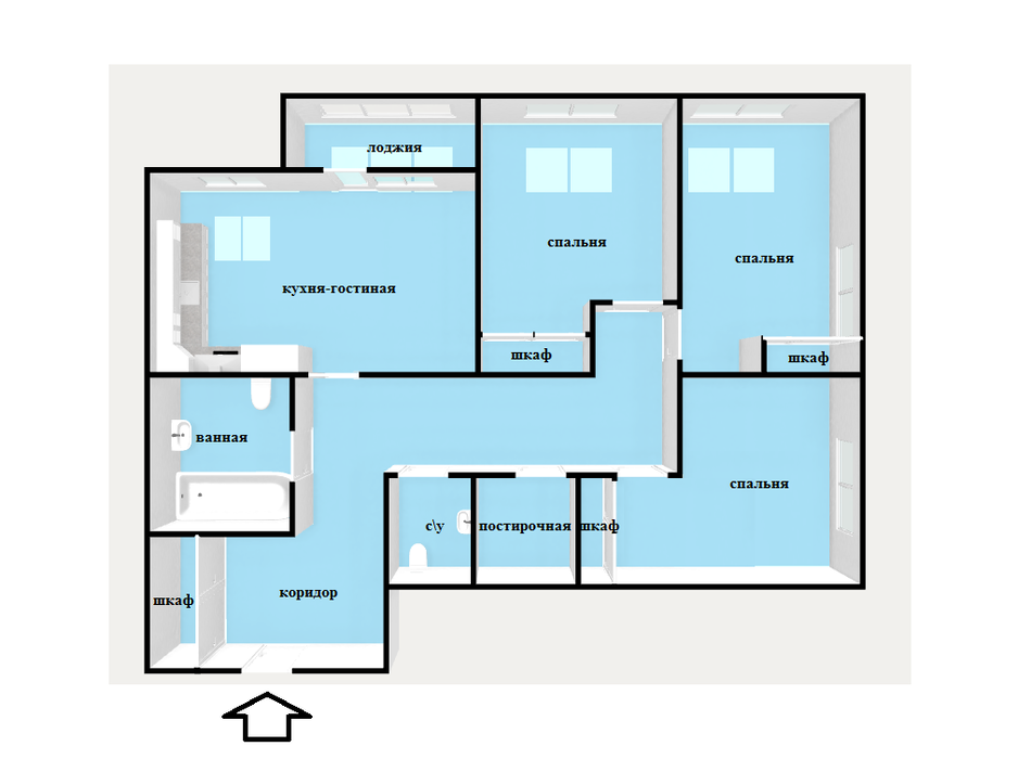 Эргономичная планировка: просторные кухня и комнаты, большая ванная, удобная прихожая со шкафом-купе. Идеально подойдёт для семьи с детьми.