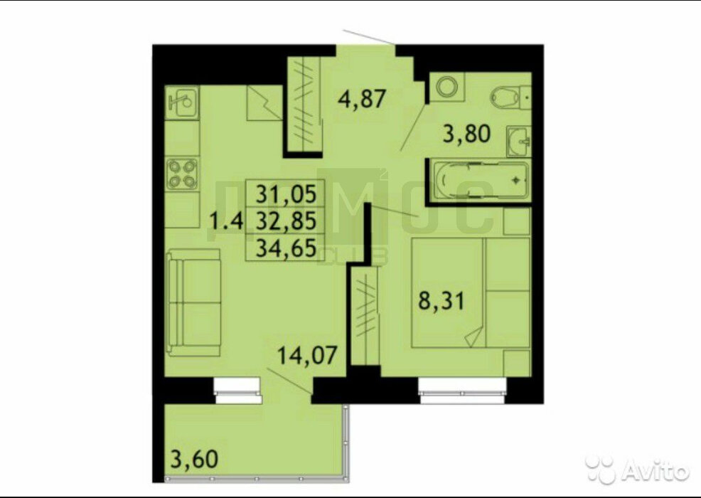 Общая площадь:30 м2
