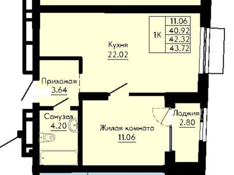 Общая площадь:42 м2