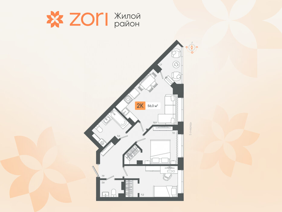 г. Березовский, д. 1, Жилые кварталы "ZORI" (Зори) (Дом 1) (городской округ Березовский) - фото квартиры 22 октября 2024 90 дн. 0 25.94 5/8 3 190 000