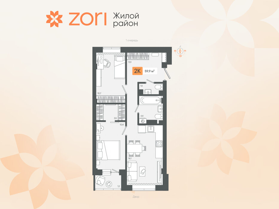 г. Березовский, ул. микрорайон Зори, Жилые кварталы "ZORI" (Зори) (Дом 1) (городской округ Березовский) - фото квартиры 21 февраля 2025 90 дн. 1 34.91 3/8 3 750 000