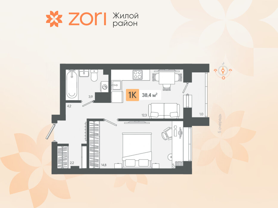 г. Березовский, ул. микрорайон Зори, Жилые кварталы "ZORI" (Зори) (Дом 1) (городской округ Березовский) - фото квартиры 21 февраля 2025 90 дн. 1 34.91 3/8 3 750 000