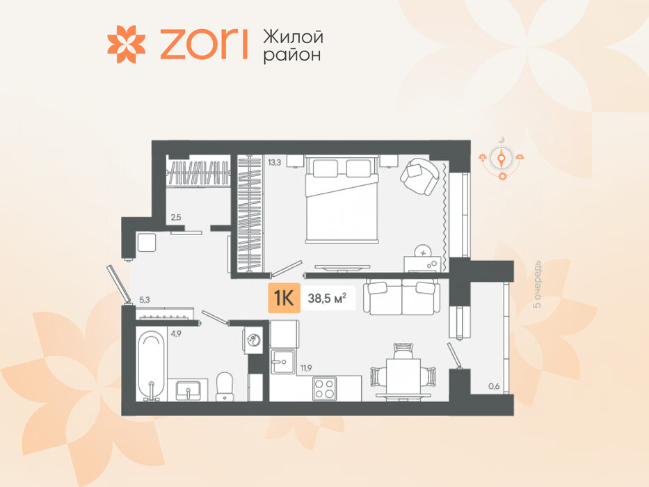 г. Березовский, ул. микрорайон Зори, Жилые кварталы "ZORI" (Зори) (Дом 1) (городской округ Березовский) - фото квартиры 21 февраля 2025 90 дн. 1 34.91 3/8 3 750 000