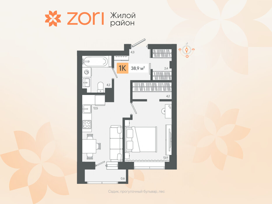 г. Березовский, ул. микрорайон Зори, Жилые кварталы "ZORI" (Зори) (Дом 1) (городской округ Березовский) - фото квартиры 21 февраля 2025 90 дн. 1 34.91 3/8 3 750 000