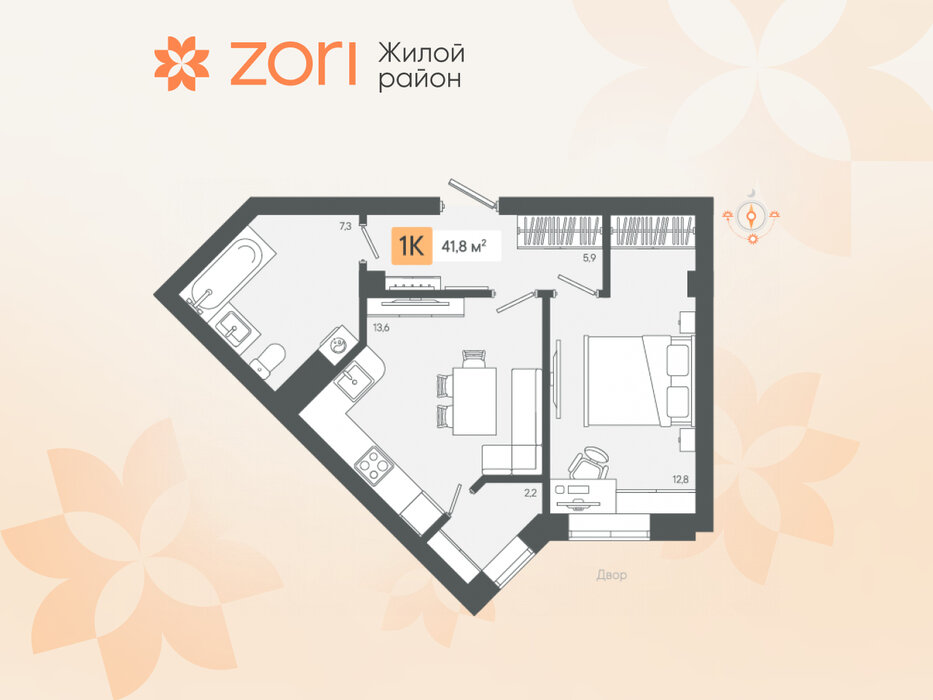 г. Березовский, ул. микрорайон Зори, Жилые кварталы "ZORI" (Зори) (Дом 1) (городской округ Березовский) - фото квартиры 21 февраля 2025 90 дн. 1 34.91 3/8 3 750 000