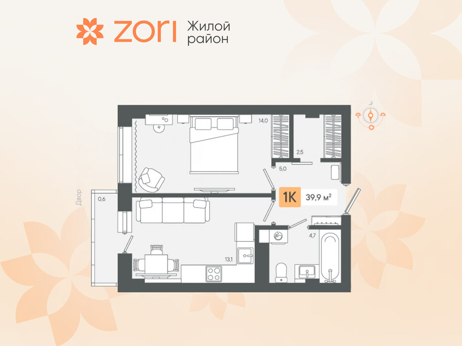 г. Березовский, ул. микрорайон Зори, Жилые кварталы "ZORI" (Зори) (Дом 1) (городской округ Березовский) - фото квартиры 21 февраля 2025 90 дн. 1 34.91 3/8 3 750 000