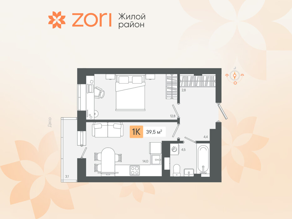 г. Березовский, ул. микрорайон Зори, Жилые кварталы "ZORI" (Зори) (Дом 1) (городской округ Березовский) - фото квартиры 21 февраля 2025 90 дн. 1 34.91 3/8 3 750 000