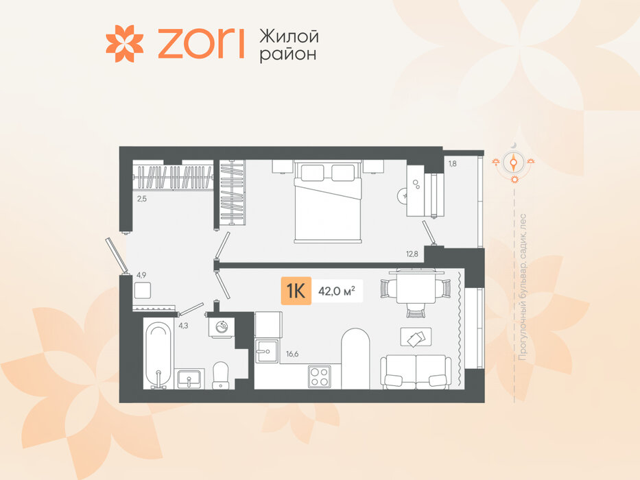 г. Березовский, ул. микрорайон Зори, Жилые кварталы "ZORI" (Зори) (Дом 1) (городской округ Березовский) - фото квартиры 21 февраля 2025 90 дн. 1 34.91 3/8 3 750 000