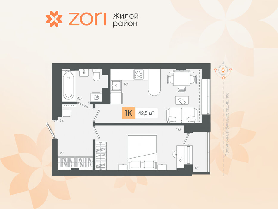 г. Березовский, ул. микрорайон Зори, Жилые кварталы "ZORI" (Зори) (Дом 1) (городской округ Березовский) - фото квартиры 21 февраля 2025 90 дн. 1 34.91 3/8 3 750 000