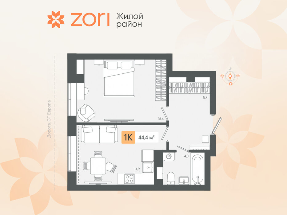 г. Березовский, ул. микрорайон Зори, Жилые кварталы "ZORI" (Зори) (Дом 1) (городской округ Березовский) - фото квартиры 21 февраля 2025 90 дн. 1 34.91 3/8 3 750 000