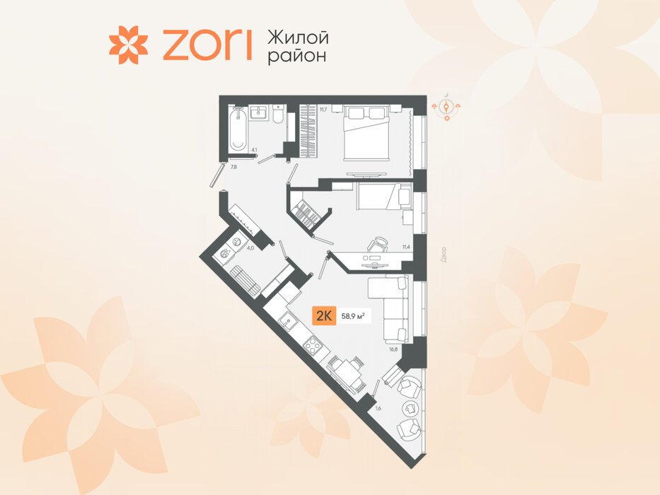 г. Березовский, ул. микрорайон Зори, Жилые кварталы "ZORI" (Зори) (Дом 1) (городской округ Березовский) - фото квартиры 21 февраля 2025 90 дн. 1 34.91 3/8 3 750 000