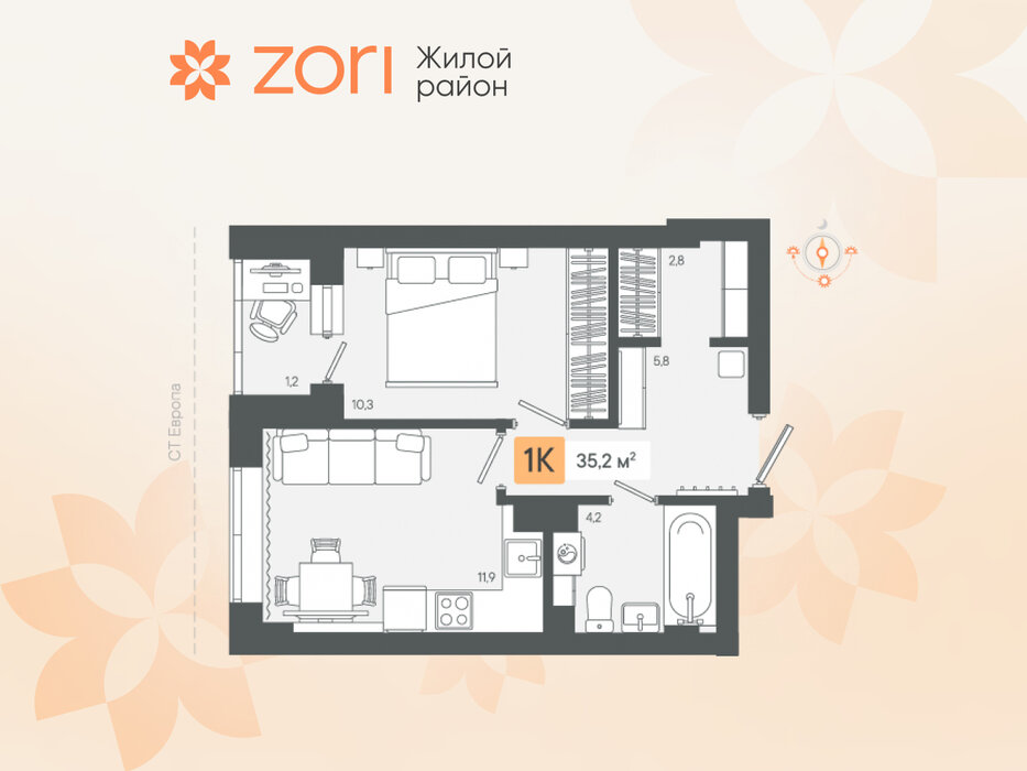 г. Березовский, ул. микрорайон Зори, Жилые кварталы "ZORI" (Зори) (Дом 1) (городской округ Березовский) - фото квартиры 21 февраля 2025 90 дн. 1 34.91 3/8 3 750 000
