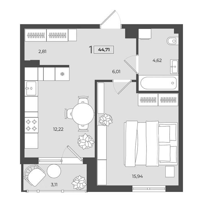 Общая площадь:44.71 м2