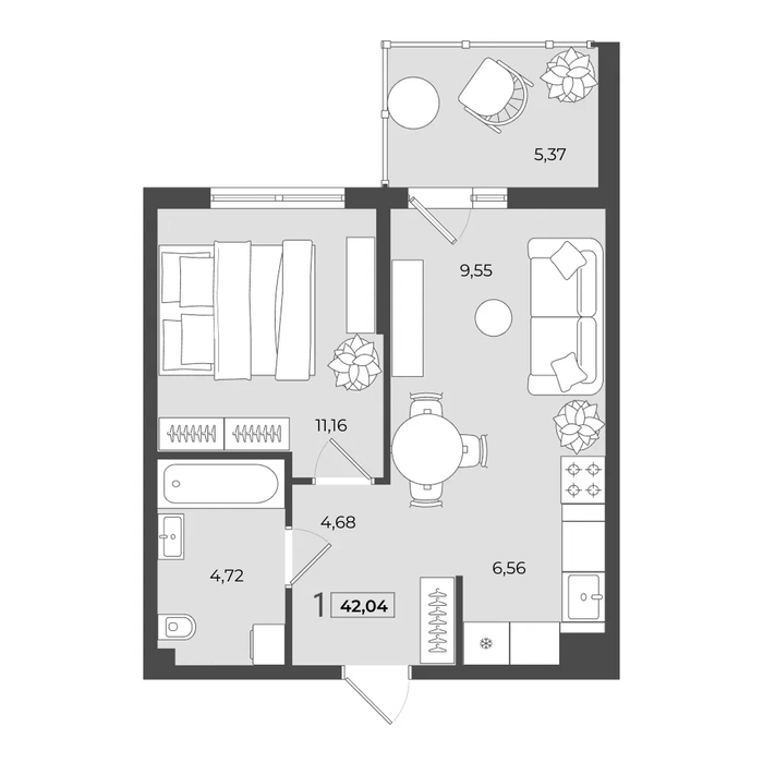 Общая площадь:42.04 м2