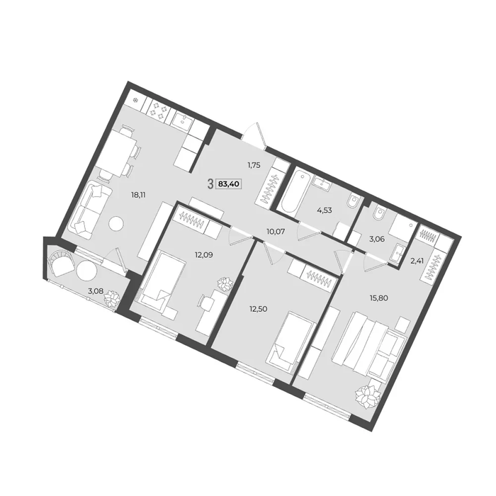 Общая площадь:83.4 м2