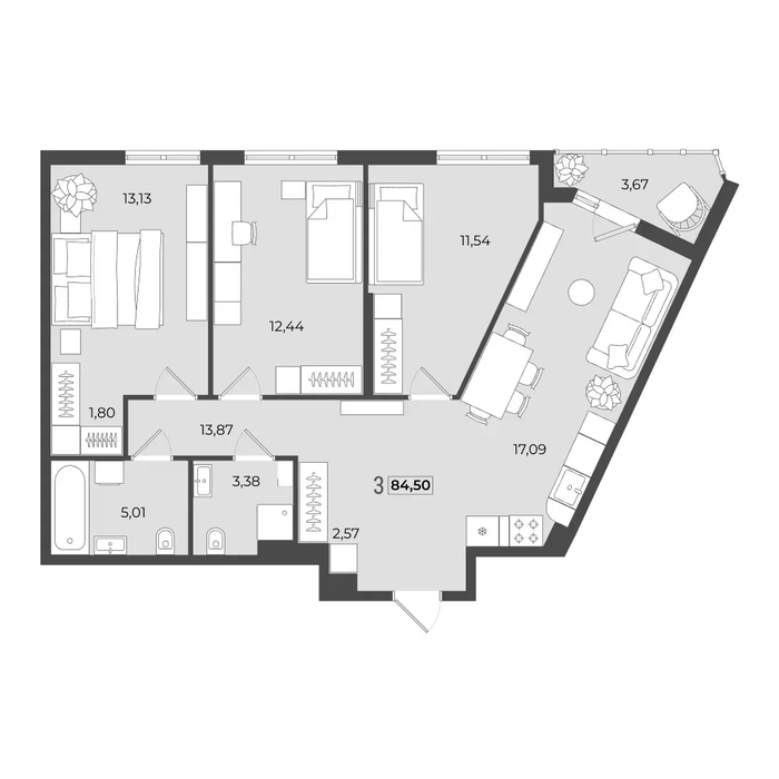 Общая площадь:84.5 м2