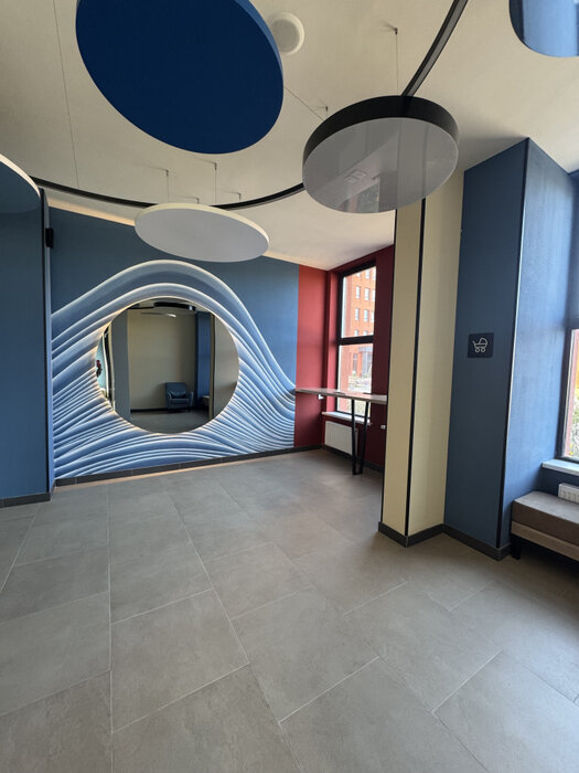 Система «умный дом» - в доме просторные холлы , три грузопассажирских лифта , спуск из подъезда в подземный паркинг, предусмотрена колясочная для хранения жильцами колясок, велосипедов. Парковка для велосипедов. Дизайнерская отделка парадной. Гостевой санузел в холле парадной. Безопасный двор без машин. Безключевой доступ на территорию и в подъезд, с помощью приложения.