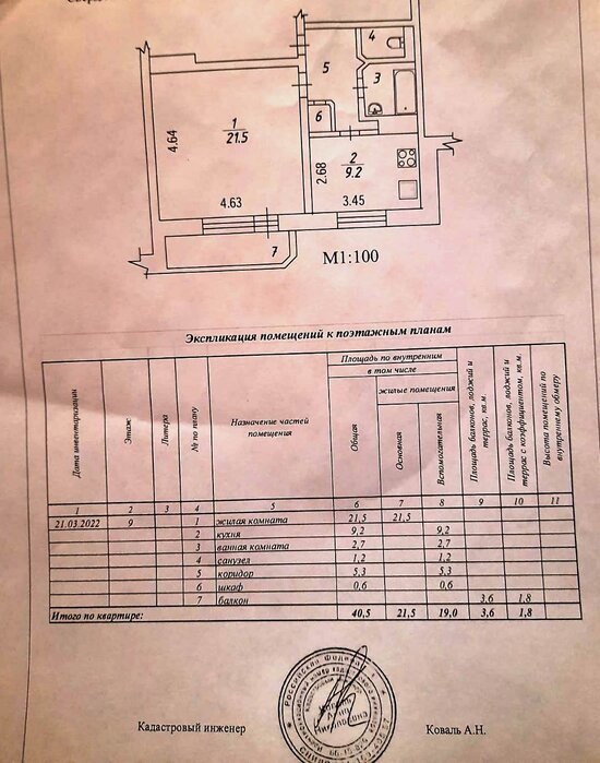 Жилая площадь:21.5 м2