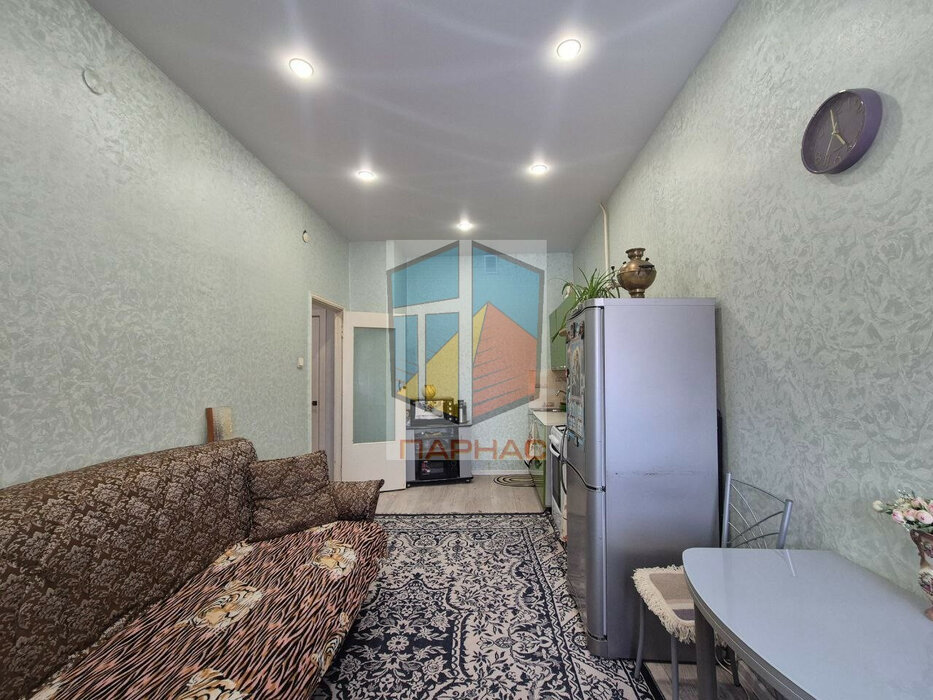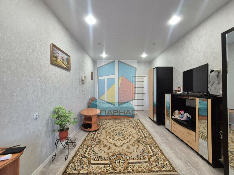 Окна заменены, балкон застеклен, на полу ламинат, натяжные потолки, межкомнатные двери, входная сейф-дверь. Стены выровнены, проводка заменена.
