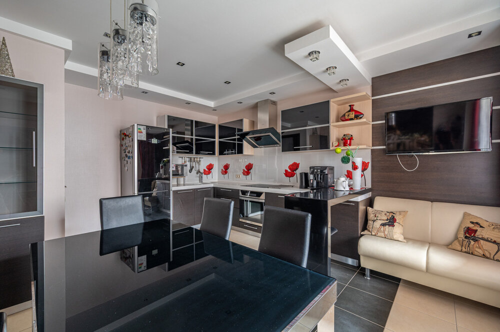 Полная отделка.Специально для вас – современный изысканный и оригинальный интерьер: плитка, декоративная штукатурка, натяжные потолки.