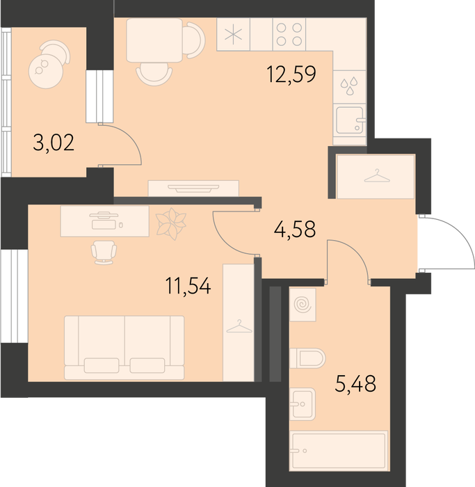 Общая площадь:35.7 м2