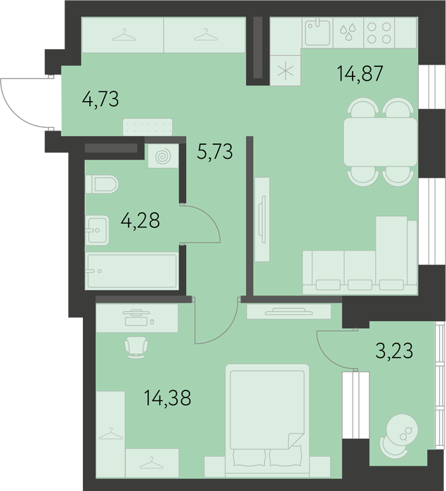 Общая площадь:45.61 м2