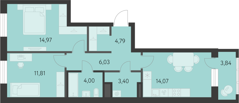 Екатеринбург, ул. Вильгельма де Геннина, 23 - фото квартиры 28 марта 2026 90 дн. 1 25 14/18 4 600 000