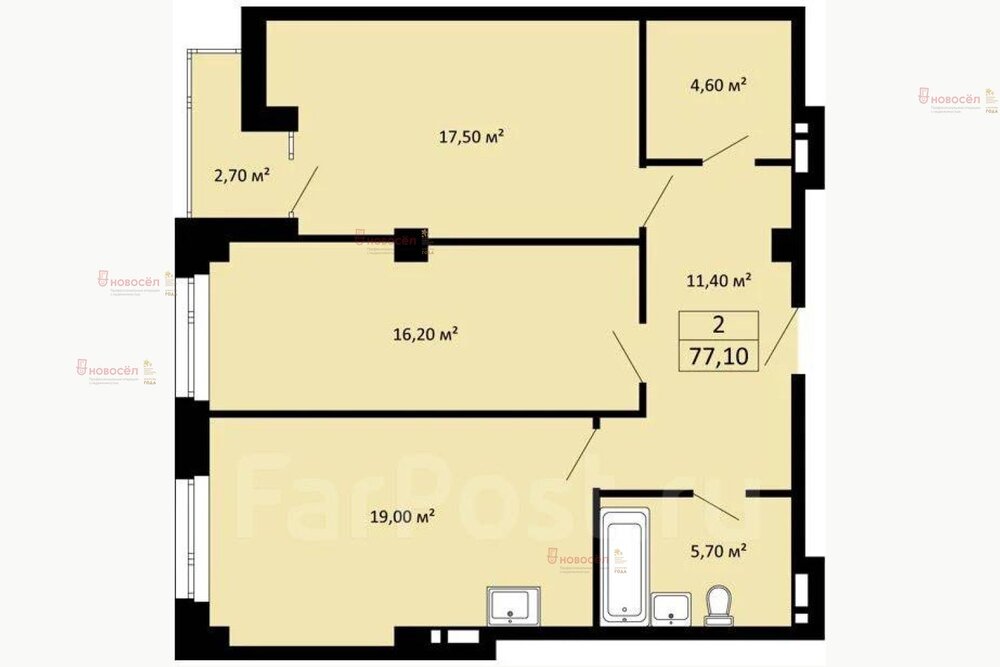 Общая площадь:77.3 м2