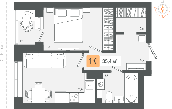 г. Березовский, ул. микрорайон Зори, Жилые кварталы "ZORI" (Зори) (Дом 1) (городской округ Березовский) - фото квартиры 21 февраля 2025 90 дн. 1 34.91 3/8 3 750 000