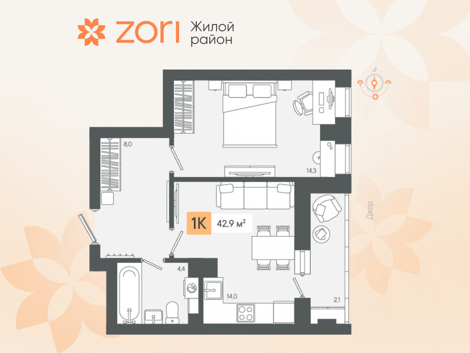 г. Березовский, ул. микрорайон Зори, Жилые кварталы "ZORI" (Зори) (Дом 1) (городской округ Березовский) - фото квартиры 21 февраля 2025 90 дн. 1 34.91 3/8 3 750 000