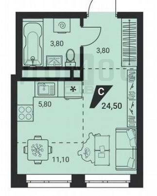 Общая площадь:24.5 м2