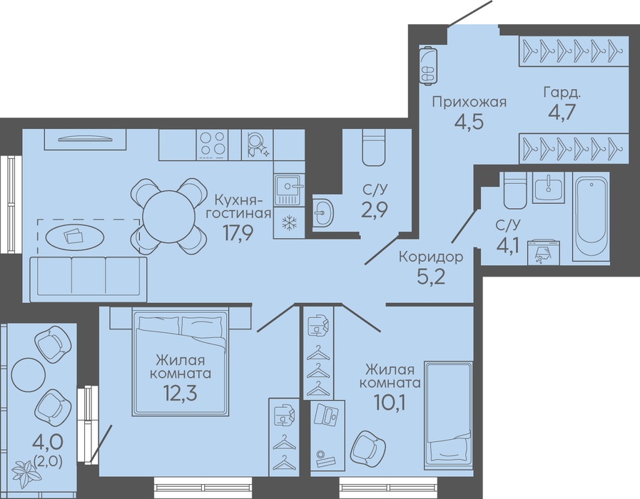 Общая площадь:63.7 м2