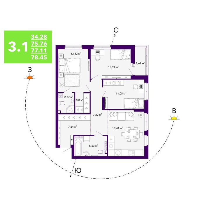 Продажа квартиры: Екатеринбург, ул. г. Екатеринбург, пр-кт Космонавтов, ЖК Радиостанция (Дом 1.1)