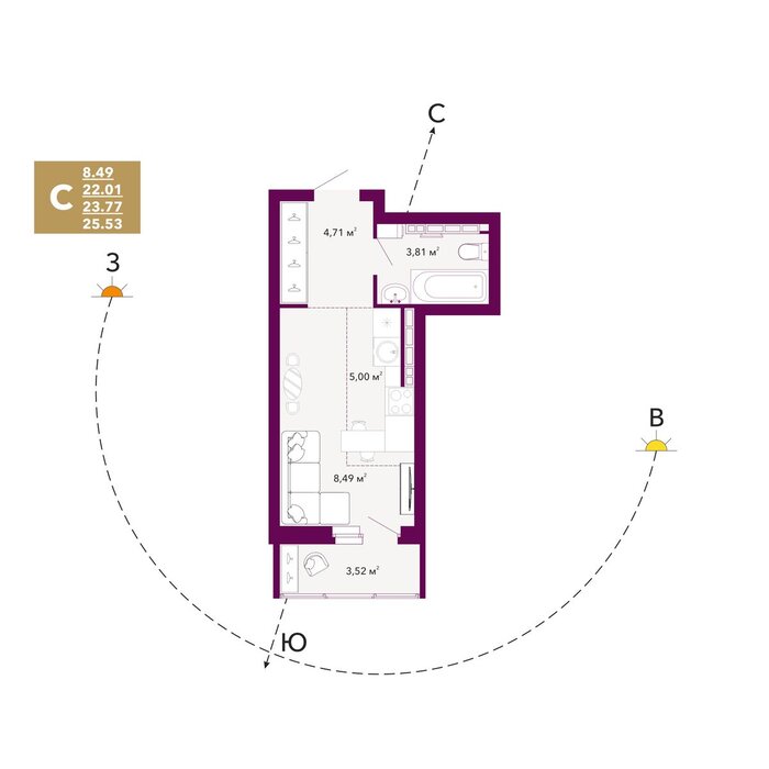 | Общая площадь: | 23.77 м2 |