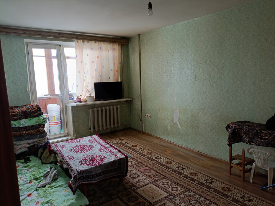 Квартира требует косметического ремонта. Пластиковые окна стоят, устанавливали 2 года назад. Кухонный гарнитур имеется. Установлены счетчики. Живут арендаторы, возможна продажа с арендаторами. ID объекта в нашей базе: 12324