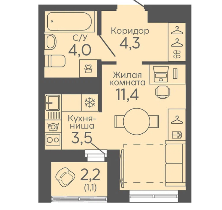 Объект № 196774. Продается уютная однокомнатная квартира в современном жилом комплексе КП Новокольцовский от надежного застройщика Синара!