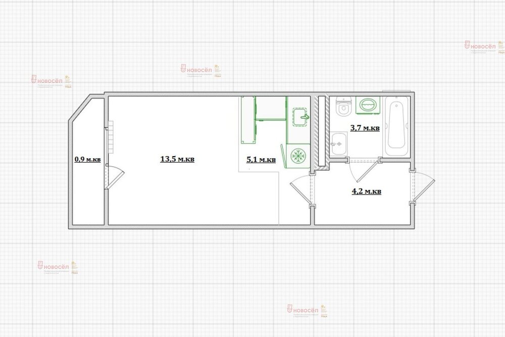 У объекта удачная планировка: спальня 13 кв.м., и кухня-гостиная 16 кв.м., окна выходят на южную сторону во двор.