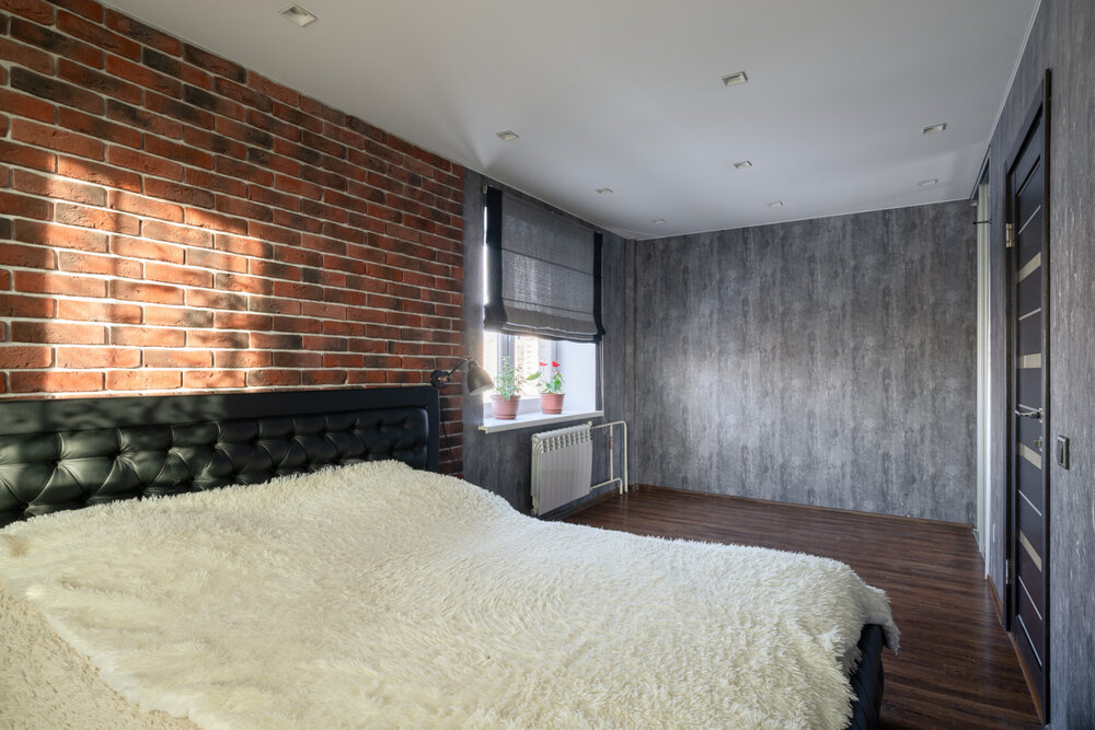 На стенах — современные обои, на потолке — натяжные потолки с уютной точечной подсветкой.