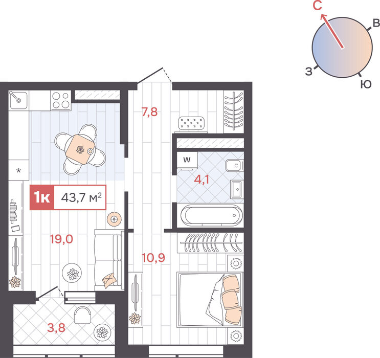 | Общая площадь: | 43.7 м2 |