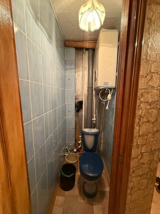 Большой 5 м2 совмещенный санузел в итальянской кафельной плитке. Есть место для стиральной машинки. Установлены душевая кабина, электрический водонагреватель, счетчики холодной и горячей воды.