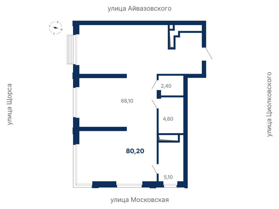 Комплекс находится в районе Автовокзала, квартале улиц: Московская — Щорса — Айвазовского — Циолковского. Здесь современная инфраструктура и транспортная доступность, позволяющая быстро добраться до любой точки города.