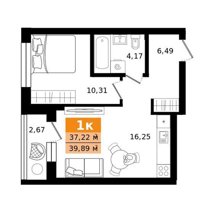 | Общая площадь: | 39.89 м2 |