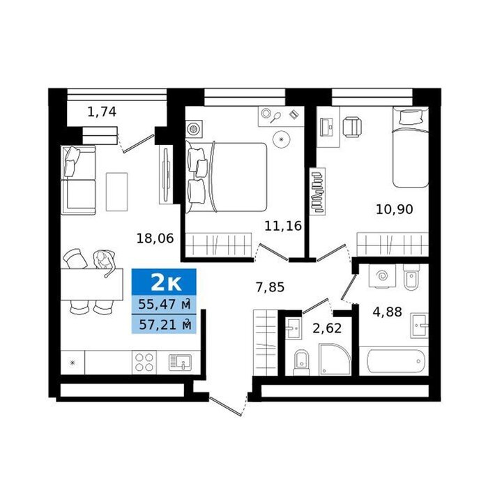 | Общая площадь: | 57.21 м2 |