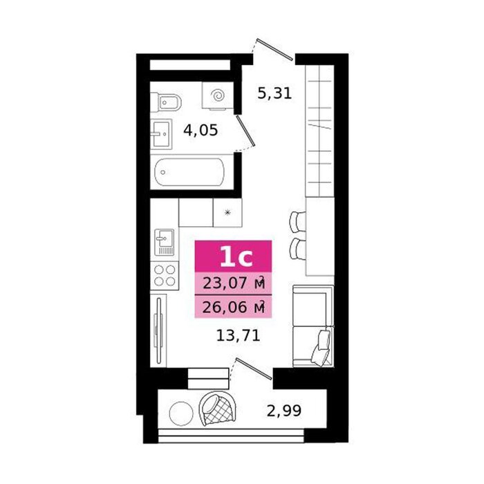 | Общая площадь: | 26.06 м2 |