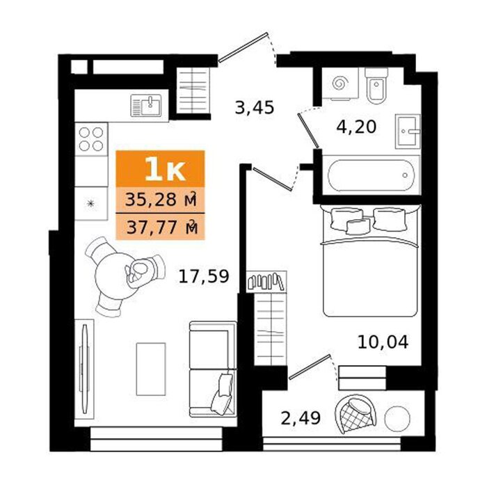 | Общая площадь: | 37.77 м2 |