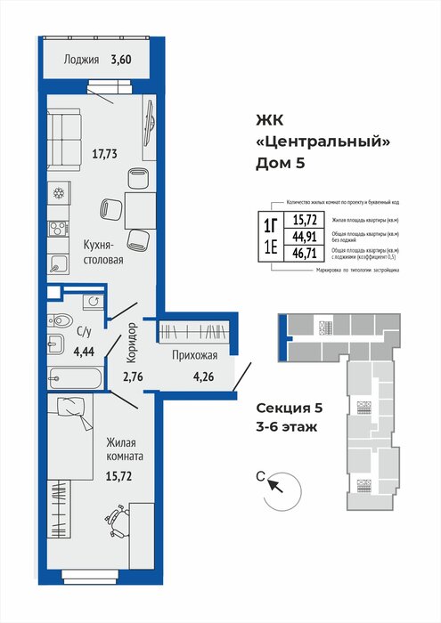 Общая площадь:46.76 м2