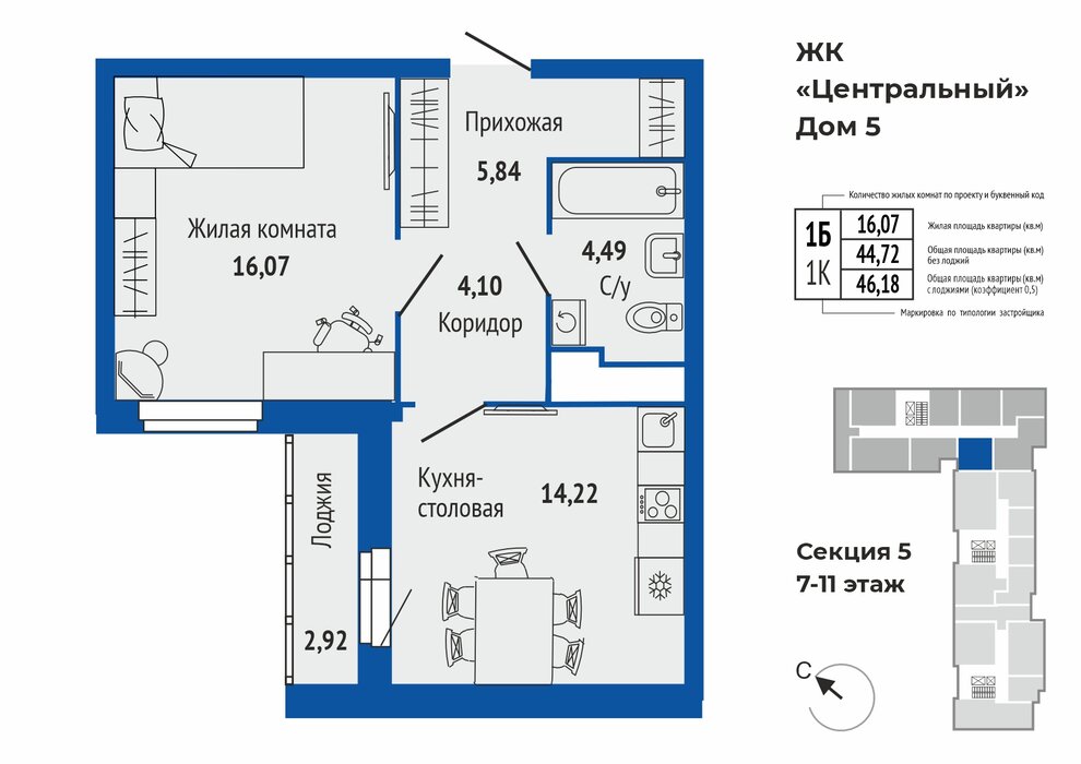 Продается 1-к квартира в жилом комплексе Центральный 5