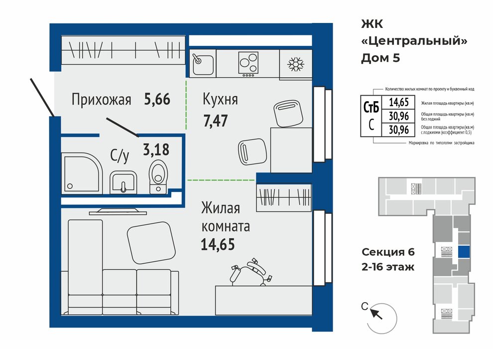 С/у совмещенный, площадь позволяет разместить ванную, туалет с раковиной, а также стиральную машинку.